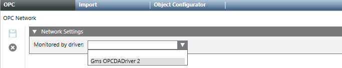 An OPC driver can monitor only one OPC network. This means that before you can import OPC servers, you must configure all the required OPC networks, each one monitored by an OPC driver.