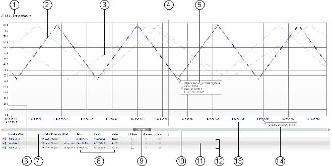 3 | Displays the trended object along with the property and alias of the object. It also displays the corresponding color of the trended object in the graphical view. |