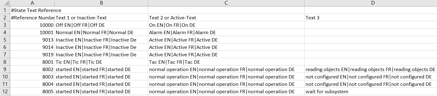 To avoid many new text groups, use the state-text-reference column to add the required text group. The functionality works for: