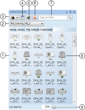 2 | Filter by Library | Allows you to display all the Symbols or graphic templates in your project libraries or just display the graphic objects from the library selected in the drop-down menu. |