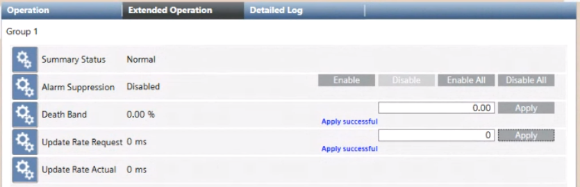Death Band | Determines the deadband smoothing for analog items in the group expressed as percentage. |