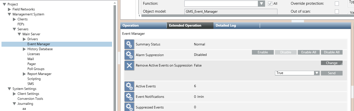 - Select Project > Management System > Servers > Main Server > Event Manager.