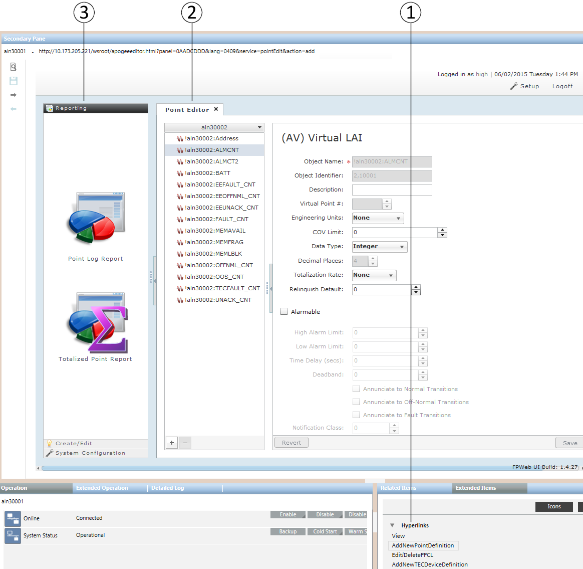 Except for the Subpoint Editor, which is only available through FPWeb UI in Desigo CC, all editors and features of the FPWeb UI are similar to those in the Field Panel Web Server program. For detailed information on using FPWeb UI, see the BACnet Field Panel Web Server User Guide (125-3584).