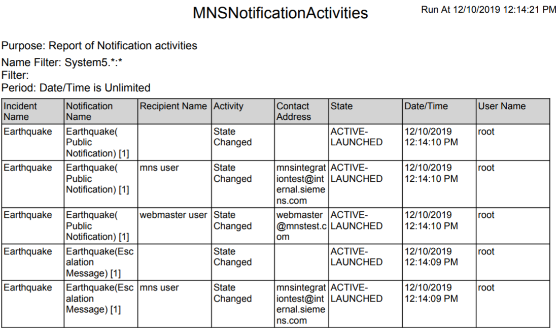 - User Name: The name of the user who performs the action detailed in a row (root).