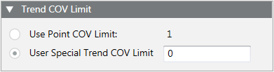 Specifies the amount of change an analog point can encounter before the field panel collects and reports the change. The Trend COV Limit section is only active if you have an analog point selected. | |