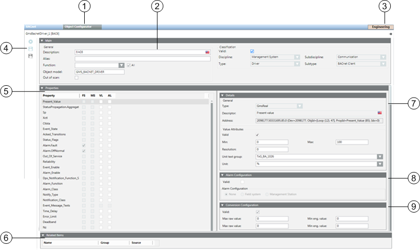 8 | Alarm Configuration expander | Alarm configuration of individual object properties. |