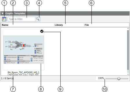 Use for configuration of all graphic templates for this object or function. The default template is taken over in the graphic via drag-and-drop. Replace the default template by a related graphic template by right-clicking and selecting Set as Default.