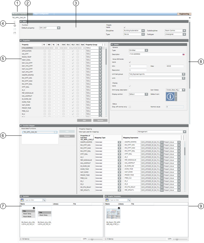1 | Models & Functions | Displays the workspace for configuring Object Models or Functions, depending on selection. |
