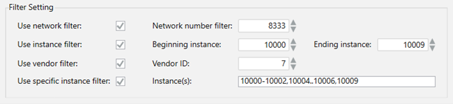 To enable the discovery of all the devices within a range, select the Use instance Filter option. Then, enter your range of numbers in the Beginning instance and Ending instance fields.