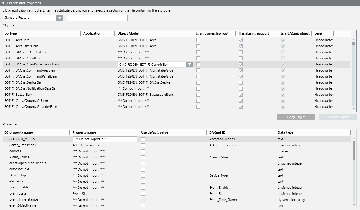 It is possible to skip the import of BACnet objects of Structured View type (regardless of the Objects table settings). In the hierarchy, these objects will be replaced by the Life Safety point or Life Safety zone object (child node of the Structured View) that has the same instance number of the BACnet object skipped.