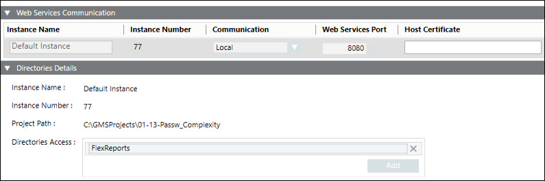 Click on the Web Services Instance row to configure and open the Directories Details expander.