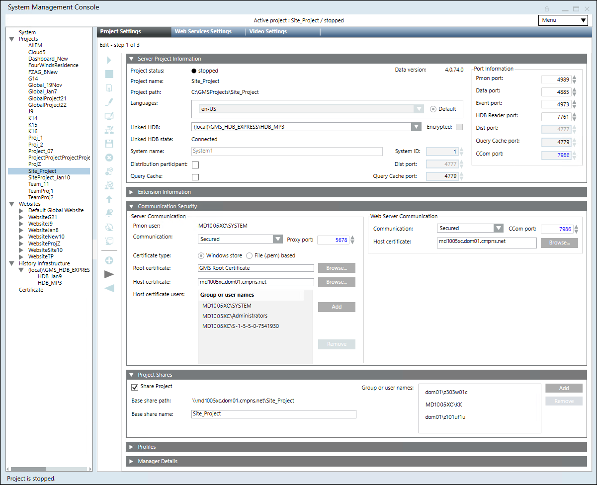 - If you have changed machine name then edit the project to synchronize the Pmon user, create a new certificate, import it and set the certificate as default.