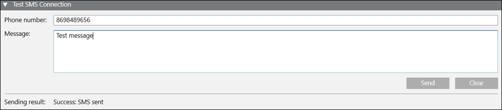 The sending result is displayed in the expander after the message is sent. NOTE: While test SMS connection, set device mode as disabled for the remaining Serial and IP modems.
