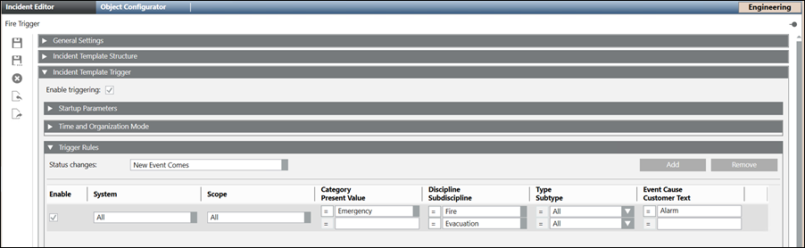 - Select the Enable check box and configure the parameters. For information, see Incident Template Trigger Expander.