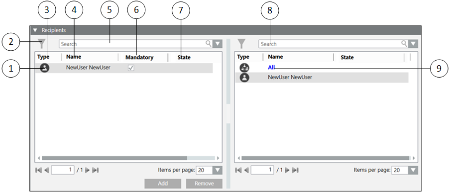 7 | State (Available only for Reno Plus license users) | Displays the state of the recipient. Following is the list of all the recipient states: