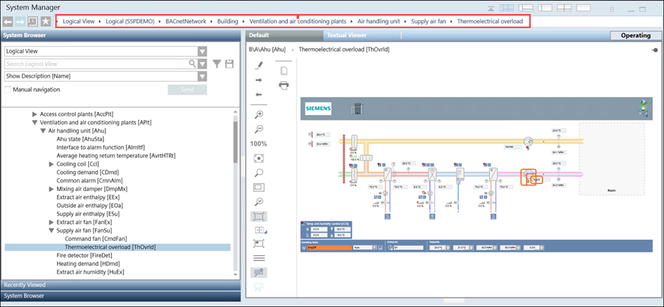Location: DemoSSP.Site 01 - Virtual Building.Building 01.Building Automation.Air Handling and Ventilation Plants.Air handling unit.Supply air fan
