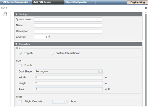 - From System Browser, select the FLN folder, and then select the Add FLN Device tab.
