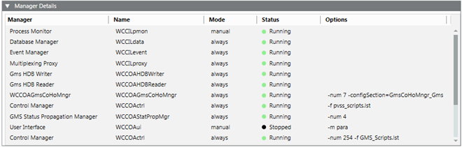 Before starting the Installed Client or Windows App Client, it is recommended to wait until all the managers of a project except for the managers with manual mode (excluding the process monitor manager), are running. A manager in red with a project status stopped – inconsistent progs file (in red) indicates that the progs file is corrupt. Check the Smc.log file located at