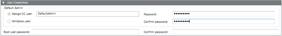 Confirm password | Re-enter the DefaultAdmin password for the Desigo CC user to confirm it. |
