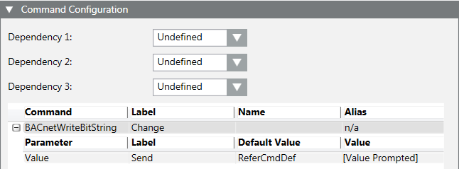 - The object model must have a button for commanding to be tested. Select the object model and define for BACnet BACnetWriteBitString or GenericWriteBitString.