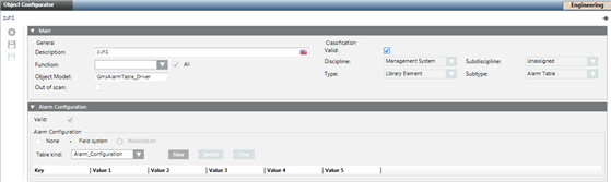 - In the Object Configurator tab, click New Alarm Table